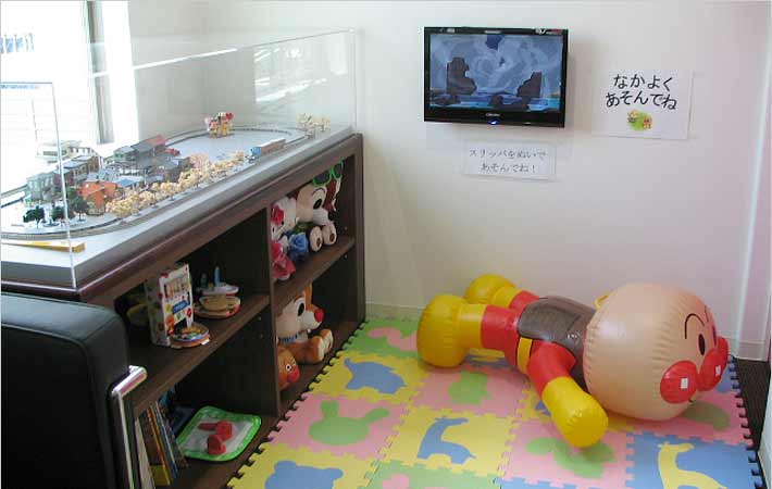 お子様が楽しめる空間を作りました。日々アニメを流しております。 絵本やおもちゃなど、退屈しないよう心がけております。